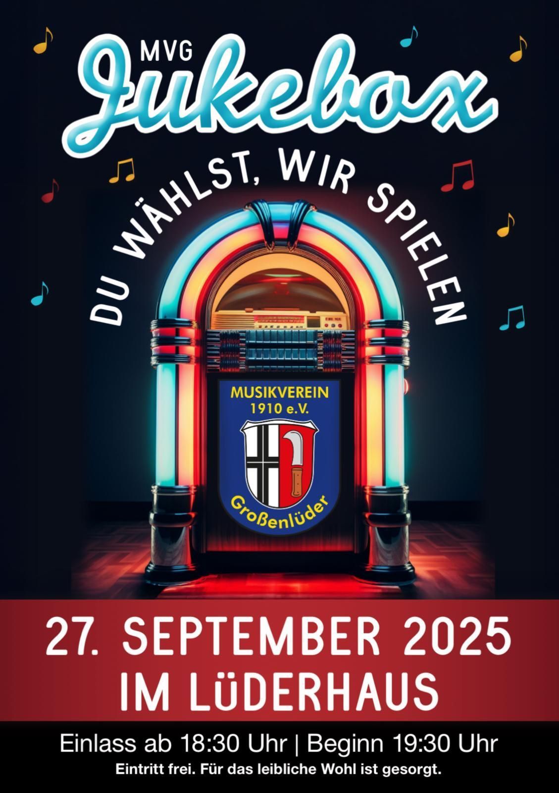 Der Musikverein Großenlüder lädt am Samstag, 27. September 2025 um 19.30 Uhr zu einem besonderen Unterhaltungsabend ins Lüderhaus ein. Sie wählen die Lieder aus die sie hören wollen, wir spielen sie.